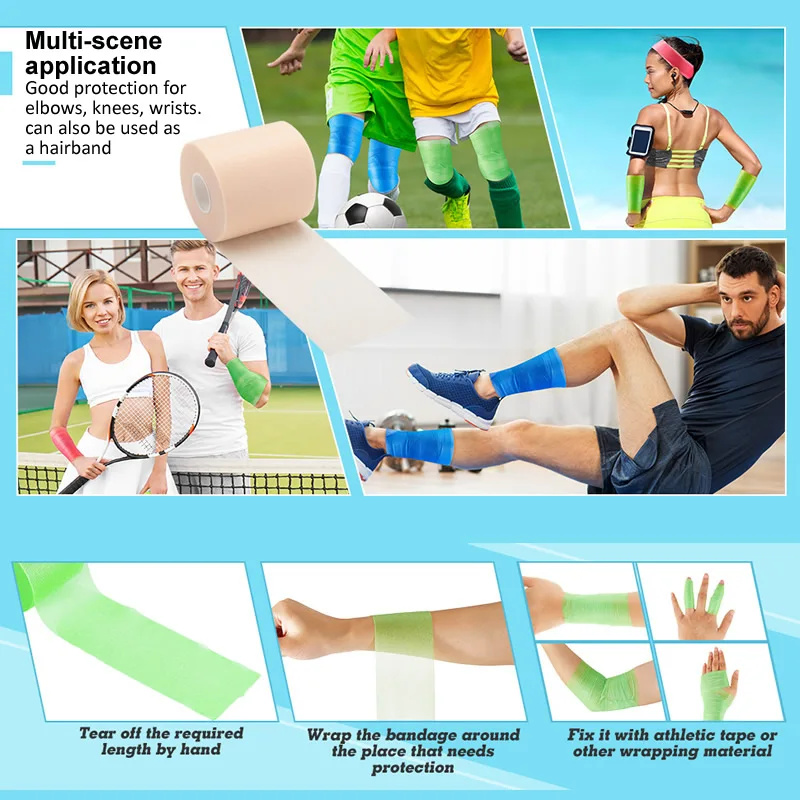 - Aplikasi serba boleh: Pra-balut di bawah pita olahraga, pegang pad dan pek sejuk, elakkan lecet, pelindung tulang kering, atau buat ikat kepala sementara.